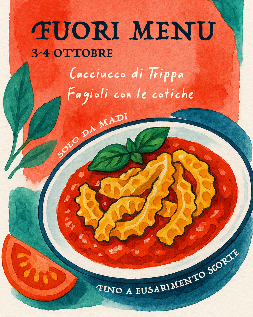 Un’esperienza che sa di festa ma anche di casa, fatta di ingredienti del territorio, chiacchiere che si intrecciano e quel calore autentico che solo la nostra osteria sa regalare.